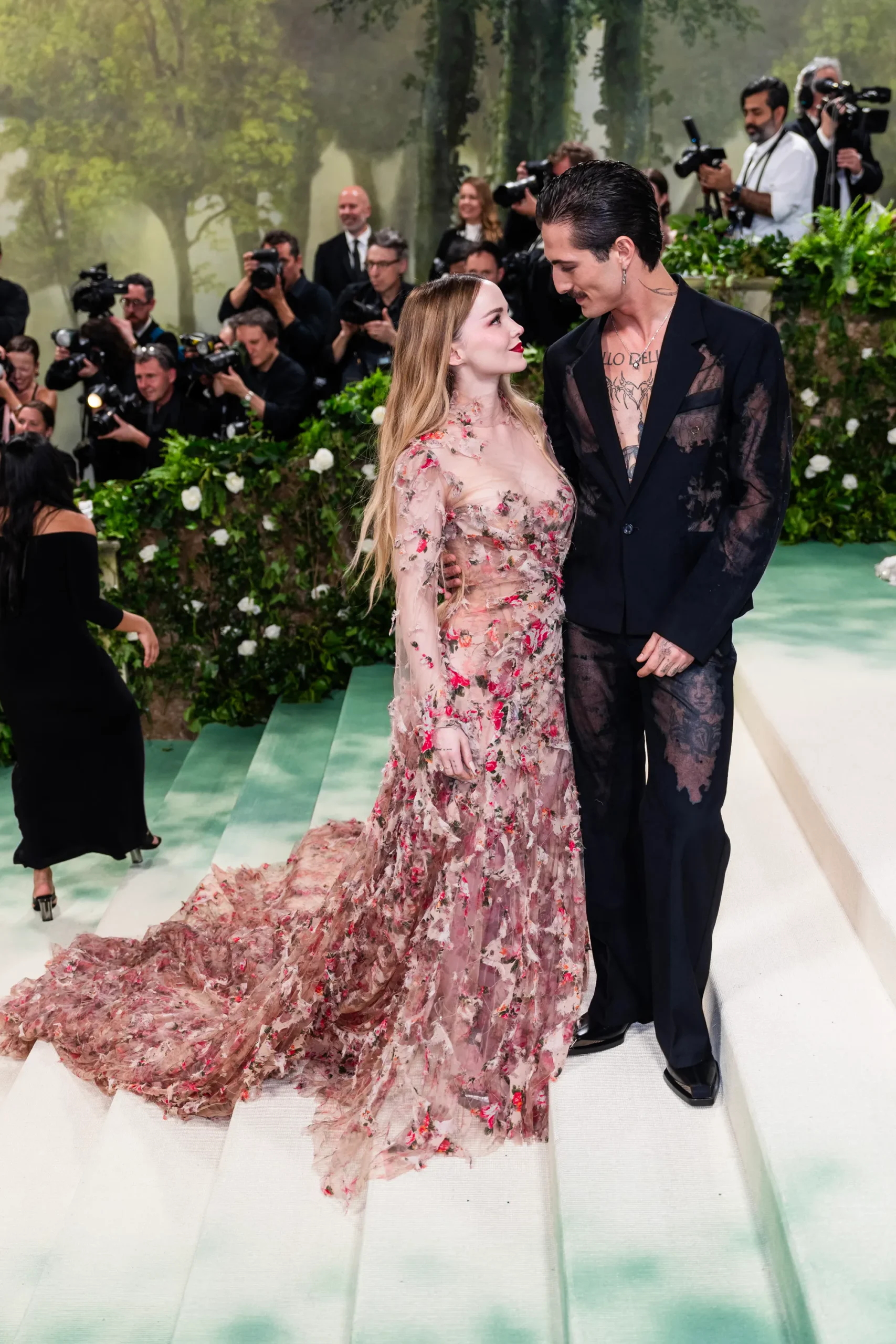 Damiano David, the charismatic lead of the Italian rock band Måneskin, and Dove Cameron, the Emmy-winning singer and actress, bring together two distinct creative worlds. They first met at the 2022 MTV Video Music Awards and reconnected backstage the following year.